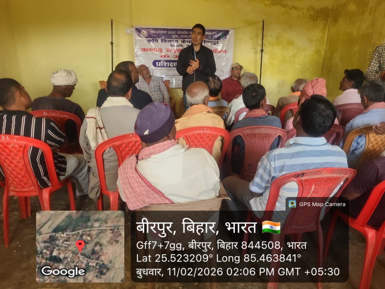 KVK Vaishali, conducted a training on Drone Technology and Leaf Colour Chart (LCC) at Krishnwara village, Patepur block under the CRA programme. The programme also included a field visit to demonstration plots and Bihar Government Agriculture Farm, enhancing farmers’ practical understanding of precision agriculture and nutrient management.(03.02.2026) |
