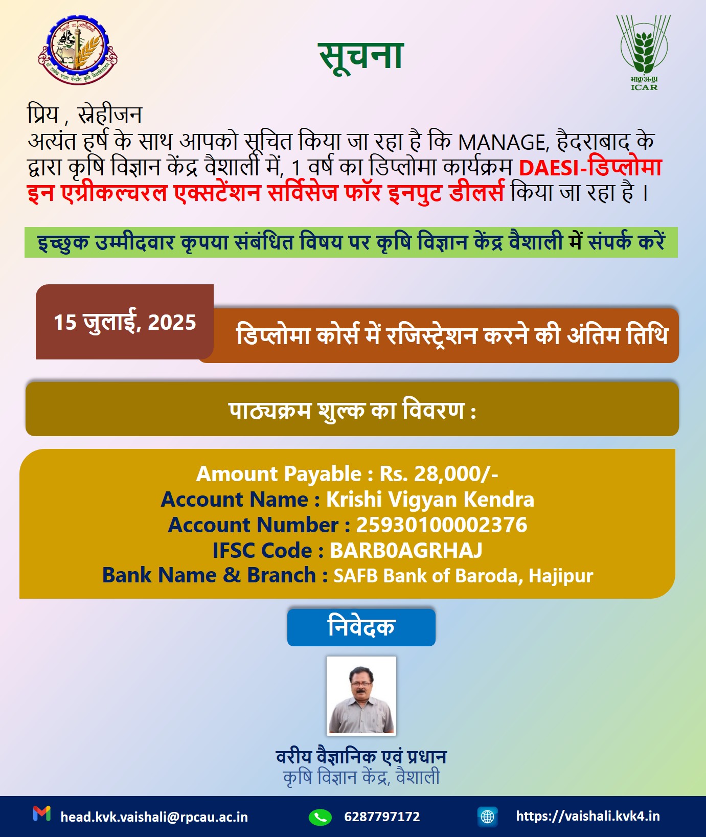 Information :head.kvk.vaishali@rpcau.ac.in