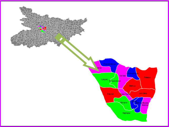 | Hajipur | Hajipur Raghopur Bidupur Lalganj Vaishali Bhagwanpur Patedhi Belsar |