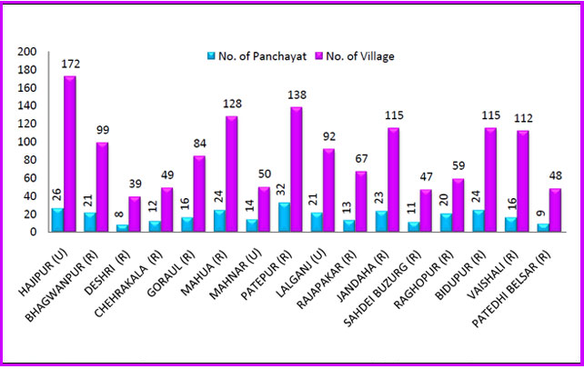 The district comprises of three administrative Sub-divisions namely Hajipur, Mahnar and Mahua which are again divided into 16 Blocks and 16 Anchals. It has 290 panchayats and 1572 villages. Out of the 1572 villages (please check on the top you commented there are 1638 villages) 155 are unhabited.
